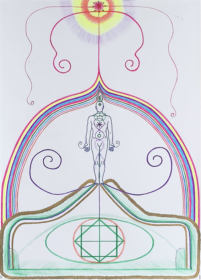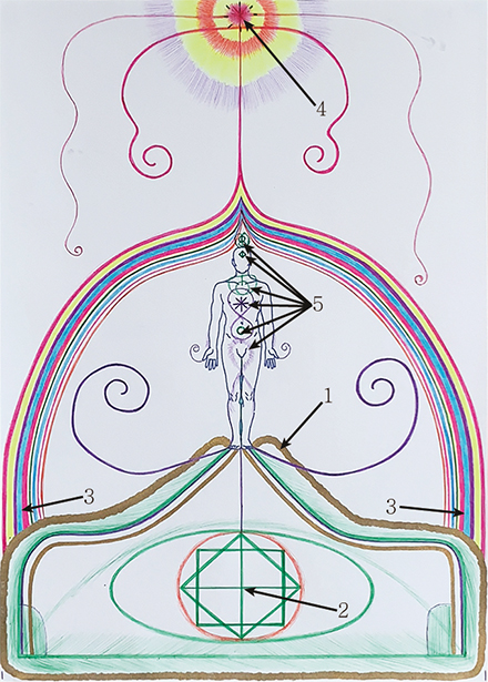 4. 영적 중심에서 빛의 상징이 보이고 에너지가 발산되고 있다.