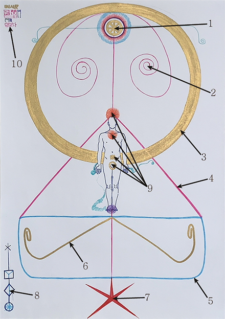 3. 금색의 강한 에너지장이 영적 영역에서 크게 드러났다. 그가 깨달은 영적 진리의 세계를 의미하기도 한다.