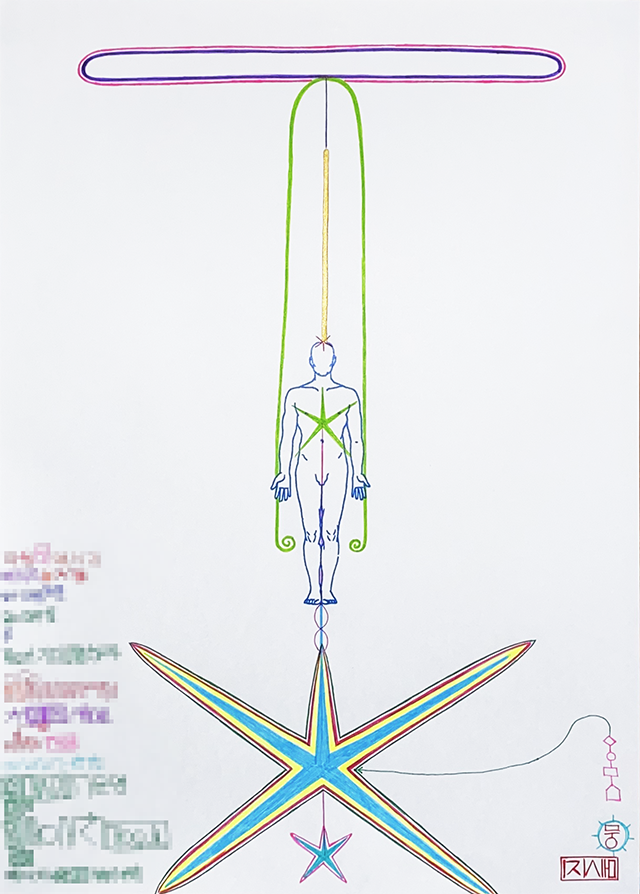 2. 1번의 금색 영적 중심선이 끝나는 지점에서 파란색의 영적 중심선이 이어진다. 파란색의 영적 중심선이 이어지다가 끝나는 지점이 영적 중심이다.
