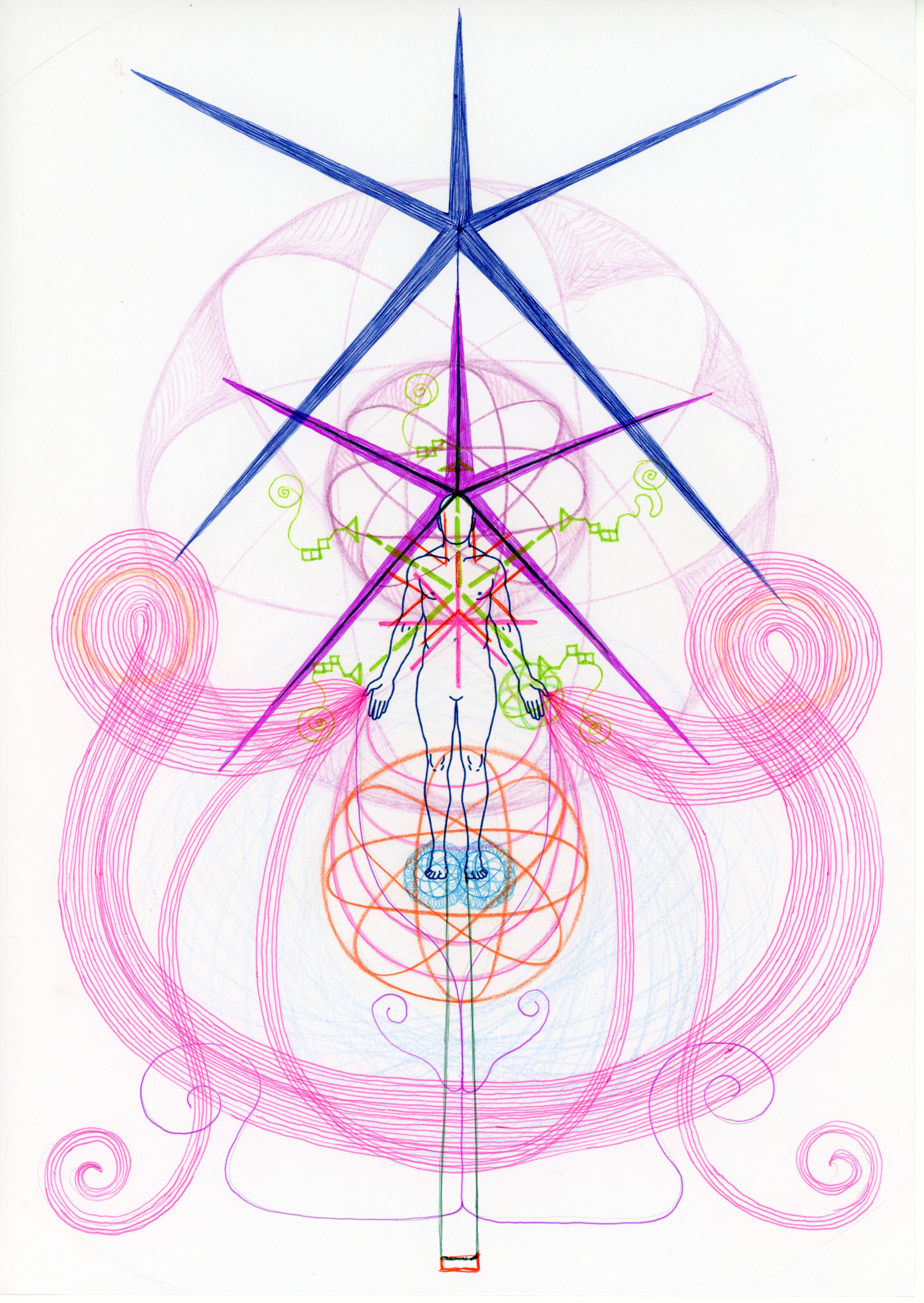 여기까지 그린 후 더 확장된 에너지장이 감지되어 고민을 하다가 종이를 덧대어 그렸습니다.