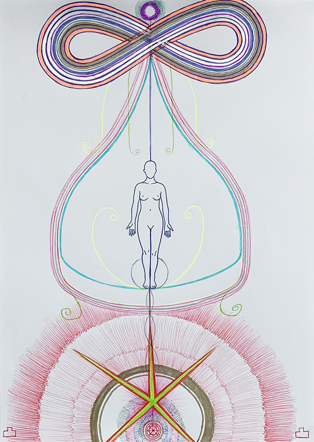 숙현불 묘음 윤봉순 대보살님의 신성화를 그리고 난 후 한국에도 이렇게 수행에 정진하시고 성취를 이루신 분이 있으심에 마음이 감동되었다. 영적 중심의 밀도높은 강한 무한대 상징을 드러내는 것에만 1시간이 넘게 소요되었다.