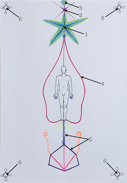 4. 영적 중심선에서 시작되어 발로 연결되는 분홍색의 에너지가 몸을 감싸고 있다.